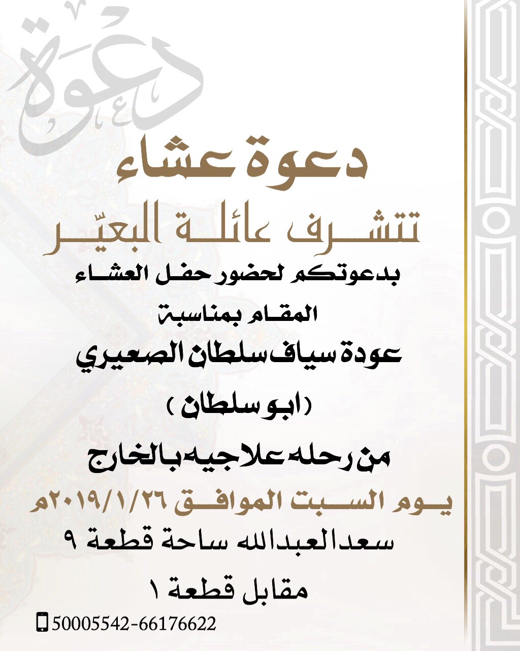 اتشرف بدعوتكم لحظور حفل زفافى اليوم. الله يبارك فيك “الاسم” ياغالي تسلم ان شاء الله. يدعوكم (اسم المُضيف) إلى حضور حفل زفاف كريمته رنا على المهندس عادل رجب هذا في حالة قيام أهل العروس بالاستضافة، أما في حالة قيام أهل العريس بالاستضافة فتقوم بكتابة يدعوكم (اسم المُضيف) إلى حضور حفل زفاف الآنسة رنا جابر على نجلهما المهندس عادل. أبرز نماذج كتابة دعوة حضور الاجتماع. عقب إطلاعك على كيفية كتابة الدعوة، هناك عدد من النماذج التي يمكنك الإطلاع عليها لتساعدك على كتابتها بشكل جيد من خلال الأتي: الله على (اسم المعرس و الله عليها.